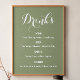 Poster Cardápio de Bebidas Casamento Sage Verde