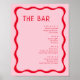 Cartões de Cardápio de Bebidas de Bar Retro Rosa e Vermelho Ondulado