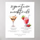 Este pôster de drinks sem álcool exclusivos de sobremesa apresenta 2 bebidas não alcoólicas fofas e seus ingredientes para sua festa ou bar de casamento. Um Martini de Chocolate e um Daiquiri de Morango Virgem desenhados acima do texto do seu evento personalizado.