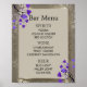 Poster Cardápio do Bar - Damasco Floral Roxo e Prata Ant