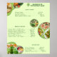 Como proprietário de um restaurante ou lanchonete, você certamente deseja mostrar e apresentar os alimentos que oferece aos clientes de uma forma atraente. Este pôster de cardápio e lista de preços está aqui para ajudar os negócios que promovem escolhas alimentares saudáveis. Com um design criativo elegante, minimalista e profissional focado em ofertas veganas deliciosas, este guia de pedidos fará com que os clientes façam fila. Comensais vegetarianos conscientes da saúde e adeptos de fitness podem facilmente encontrar suas saladas nutritivas, tacos, refeições de macarrão, smoothies verdes e mais. A apresentação visual estética de fotos de comida vegana apetitosa e o esquema de cores atraente do verde alinham-se com o que essa marca é conhecida, enquanto o layout personalizável permite que você destaque os itens do seu cardápio da maneira que preferir. Você também pode adicionar o nome e logotipo da sua empresa para ampliar o reconhecimento da sua marca quando os clientes a notarem e se