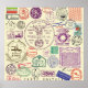 Conjunto de Carimbo de Documento Vintage. Excelente para decoração de vintage. Padrão geométrico de vintage sem fim com texturas desenhadas à mão. Um prazer eterno! Carimbo de vinheta definido para adicionar um toque de histórico à sua decoração. carimbo, letra, safra, ilustração, retrato, correio, decor, set, textura, data, antiga, forma, estilo, documento, fundo, quadro, venda, círculo, grunge, bandeira