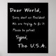 Poster Caro mundial - Carta De Desculpas Dos Eua Anti-Tru