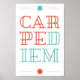 Carpe Diem (aproveite o dia) é uma frase muito popular, que deveria ser lembrada de vez em quando. Embora esta frase seja muito antiga, tirada do Orace's Odes em 23 a.C., ela foi popularizada pela Sociedade do Poeta do Morto, e pelo personagem de Robin Williams, Johm Keating. O design é simples, ousado e elegante. Ele apresenta as palavras Carpe Diem em 2 cores diferentes, em uma matriz de letras 3x3. 2 sóis adornam as partes superior e inferior da design, exceto no vestuário, onde apenas a frase é visível. Esta frase motivacional é um presente excelente para muitas pessoas, e é um lembrete excelente para viver todos os dias.