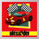 Carro de corrida de crianças legal e colorido, vermelho, amarelo, bandeira marcada, design de corrida automática no padrão Scarlet Red Stripes. Presente perfeito para bebês, crianças, crianças, adolescentes ou adultos! Personalizado o modelo de design adicionando um nome de criança ou texto personalizado. Visite nossa loja, Festa de aniversário House, para mais produtos personalizáveis para excelentes!