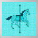 Imagens digitais mistas de um cavalo carrossel clássico, em padrões mistos, sobre fundo arabesco ladrilhado - Turquesa/Peacock e aqua, acentuadas com o téal