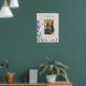 Este lindo cartão de boas-vindas floral de funeral apresenta flores de lavanda roxa e galhos, uma foto de seu ente querido, seu nome e datas de vida.