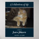 Cartaz de serviço fúnebre de Celebração de Vida minimalista ou reunião de lembranças. Todo o texto é ajustável. Basta usar o modelo fácil! Fonte de letra elegante com fonte serifada básica para datas. Uma opção de foto. Pequena moldura prateada falsa ao redor da foto. Feito para combinar com minhas opções de cartões de oração, livro de visitas e programa de Celebração de Vida. A foto da Taffy, meu gato, é apenas um exemplo.