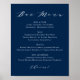 Poster Cartão de Menu de Bar de Casamento Azul Marinho co