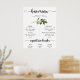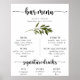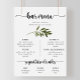 Poster Cartão de Menu de Bar de Casamento com Folhas Verd