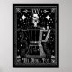 Design de cartão de tarot para amantes de café! O Pote Moka. Ilustrações brancas e negras com uma cafeteira de pote de moka, grãos de café e crânio em um chapéu.