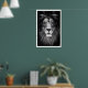 Impressão de Leão Preto e Branco, Olhar Intenso, Estilo Minimalista (Papel Fosco) 1