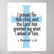 Esta impressão de berçário apresenta uma cruz azul desgastada com 1 Samuel 1:27 "Eu pedi esta criança e o Senhor me concedeu o que eu lhe pedi"