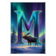 Traga a majestosa beleza do inverno para o seu espaço com esta arte de parede Aurora Letra M. Uma letra M brilhante emerge de uma floresta coberta de neve, iluminada por faixas fluídas de Luzes do Norte em tons cintilantes de turquesa, esmeralda e violeta. Um alce suave está em primeiro plano, suavemente iluminado pelo brilho da aurora, adicionando um alce florestal pacífico à cena mágica de inverno.