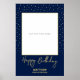 Adicione um detalhe divertido à sua festa de aniversário. Este cartaz de adereços para fotos apresenta um texto "Feliz Aniversário" em letra cursiva com texto personalizado. Este design será perfeito para uma celebração de aniversário moderna em azul marinho e dourado. Anexe o cartaz a um painel de espuma e recorte a área quadrada marcada. Seus convidados vão se divertir com esta moldura de adereços para fotos e lembrar do seu dia especial.