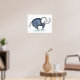 Roupas de Banho de Modelos de Elefante apresenta um perfil de elefante fofo em um traje de banho listrado de azul marinho e branco.