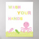 Poster Cartaz de arte para banheiro de menina lave as mão