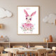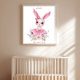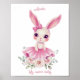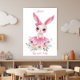Arte de Parede Coelho Menina Rosa Floral com Texto Personalizado