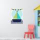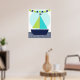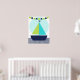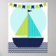 Um cartaz de berçário com design de barco de vela náutico ótimo para o quarto do bebê ou de uma criança mais velha apresenta um barco de vela com velas verdes e azul-turquesa, uma faixa de bandeira verde-limão e azul-marinho, e listras de chevron na água!