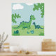 Pôster Cartaz de berçário de mãe dinossauro e menino fofo