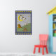Cartaz de berçário do poema Hey Diddle Diddle, fofo e divertido, ótimo para o berçário do seu bebê, apresenta uma vaca saltando sobre a lua, gato e violino, o cão rindo, e o prato e colher, além de muitas estrelas em um céu azul profundo!