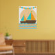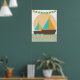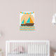 Um cartaz de berçário com design náutico de veleiro é ótimo para o quarto do bebê ou de uma criança mais velha, apresentando um veleiro com velas azuis turquesa e laranja, um oceano de listras chevron em azul turquesa e laranja e uma faixa de bandeira azul turquesa e laranja.