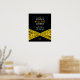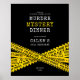 Placa de boas-vindas à festa de mistério de assassinato com linhas de polícia amarelas.