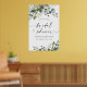 Definido por padrão como 60x90cm em formato XL. O design apresenta elegante folhagem de eucalipto em aquarela, ramos de oliveira e outros elementos folhosos. "Chá de Noiva" é impresso em uma fonte moderna e elegante com um pequeno coração decorativo. Este item também está disponível em formato para download se você estiver com pouco tempo. Você pode levá-lo para a sua gráfica local. Você também pode adicionar texto adicional ou alterar o arranjo.
