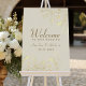 Dê as boas-vindas aos seus convidados com elegância atemporal usando este cartaz de boas-vindas de casamento em dourado com flores vintage. Com um fundo creme adornado com detalhes de renda floral dourada e caligrafia simples, este cartaz exala sofisticação refinada. Perfeito para casamentos com tema vintage, clássico ou romântico, ele define o tom para uma celebração inesquecível.
