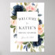 Poster Cartaz de Boas Vindas de Chá de Noiva Floral Azul
