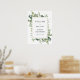 Dê as boas-vindas aos convidados para o chá de bebê com este lindo cartaz, apresentando uma moldura dourada rodeada por folhas de eucalipto e folhagens. Adicione o nome da convidada de honra, data do chá e texto de boas-vindas personalizado usando os campos fornecidos.