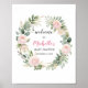 Este charmoso letreiro de boas-vindas define o tom perfeito para a sua celebração especial, envolvendo-a em uma atmosfera orgânica e serena. A exuberante folhagem em aquarela fornece um belo e natural cenário para realçar a ocasião alegre e dar as boas-vindas aos entes queridos. Quer seja exibido na entrada ou colocado de forma proeminente, este letreiro causará uma primeira impressão encantadora e dará início ao seu chá de bebê com estilo. Letreiro de boas-vindas de chá de bebê com folhagem em aquarela para menina.