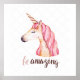Poster Cartaz de Cabeça de Unicórnio Rosa Seja Incrível