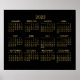 Cartaz do calendário anual de 2023 com números dourados falsos em fundo preto. As dimensões do cartaz são 24 polegadas por 20 polegadas (horizontal).