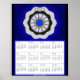 Lindo cartaz de calendário de 2025 com arte geométrica islâmica azul, branca e preta na www.zazzle.com/artislamia