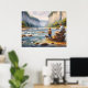 Poster Cartaz de canoa de rio de aquarela digital para pe