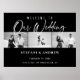 Cartaz de casamento elegante com foto preto e branco e fonte branca moderna com recurso personalizável de engajamento três fotos preto e branco Sinal de casamento com fonte branca em fundo preto. Todas as camadas foram deixadas desbloqueadas para que você possa clicar para personalizar ainda mais e reposicionar o texto, a foto ou até mesmo alterar o tamanho ou o tipo de letra.