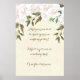 Um belo cartaz de casamento com flores brancas/marfin, esperando que você o personalize com seus detalhes. Um tamanho perfeito para usar como um gráfico de assentos ou cardápio de coquetéis.