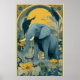 Este cartaz de circo Art Nouveau azul e amarelo é um de um conjunto de 4 (vendidos separadamente). Ele apresenta um elefante performer.