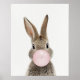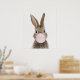 Poster Cartaz de Coelho soprando Chiclete Rosa
