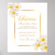 Agradeça aos seus convidados por comparecerem ao seu casamento com este simples cartaz de favores de moldura com efeito dourado com flores botânicas tropicais de plumeria frangipani. Personalize com os nomes do seu casamento, data e mensagem de agradecimento. Outros itens correspondentes estão disponíveis. Pintura e design original em aquarela por wwwmylittleedenweddings.com
