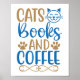Aqui está um lindo cartaz para quem ama gatos, livros e café!! Faz um ótimo presente de Natal, aniversários e mais.