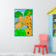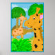 Uma ilustração divertida de duas girafas em um paraíso da selva. Este é um ótimo cartaz para o quarto de uma criança. A cor do fundo é personalizável.