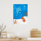 Uma ilustração aquática gráfica de um golfinho fofo e uma estrela-do-mar engraçada em um cartaz. ©2013charmainepaulson