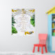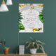 Uma festa vibrante, romântica e caprichosa de folhagem verde brilhante com um clima de palm springs e seda branca divertida e dois anéis de casamento para um visual chique e glamoroso para personalizar o cartaz de menu