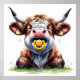 Poster Cartaz de Vaca Highland Bebê Floral Rosado