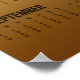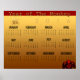 Calendário dourado para o Ano do Macaco de Fogo com letras douradas (ano do macaco), Símbolo Chinês do Macaco Dourado em um círculo e números com sombras + chimpanzé vermelho no canto direito.