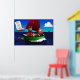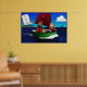 Cartaz da rima sem sentido de Edward Lear, O Coruja e o Gatinho. Uma fotomontagem digital colorida e imaginativa.