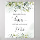 Cartaz do jogo de chuveiro de noiva de quantos beijos na folhagem eucalipto. Itens correspondentes disponíveis.