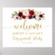 Cartaz de Boas-Vindas Boho Outono Marsala Dourado Personalizado para o seu partido de noivado!